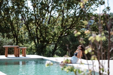 Ξεκινήστε τη μέρα σας με ένα δροσιστικό μπάνιο στην ιδιωτική σας πισίνα, με το νερό να αστράφτει κάτω από το πρωινό φως.